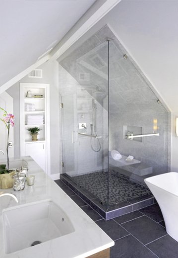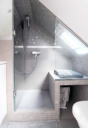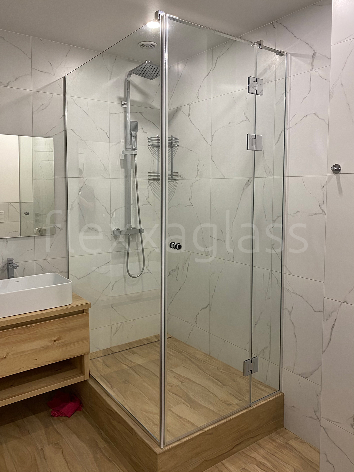 Угловая душевая с распашной дверью