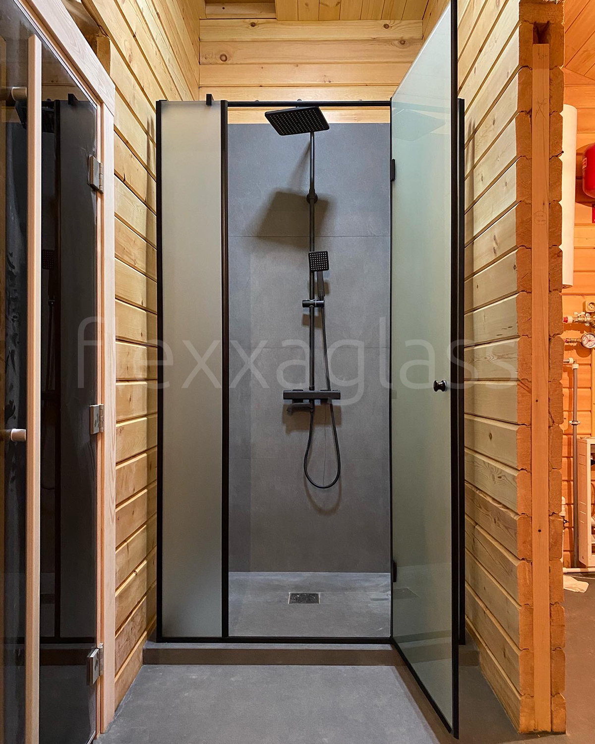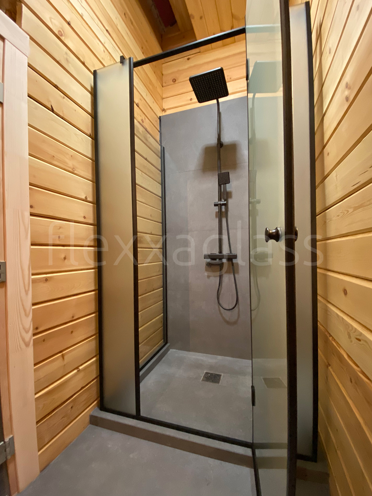 Угловая душевая LOFT с распашной дверью