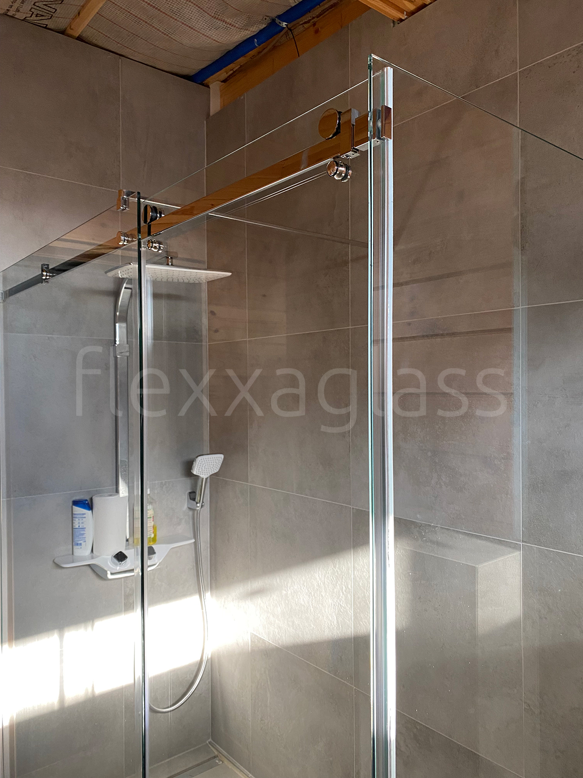 Угловая душевая с одной раздвижной дверью