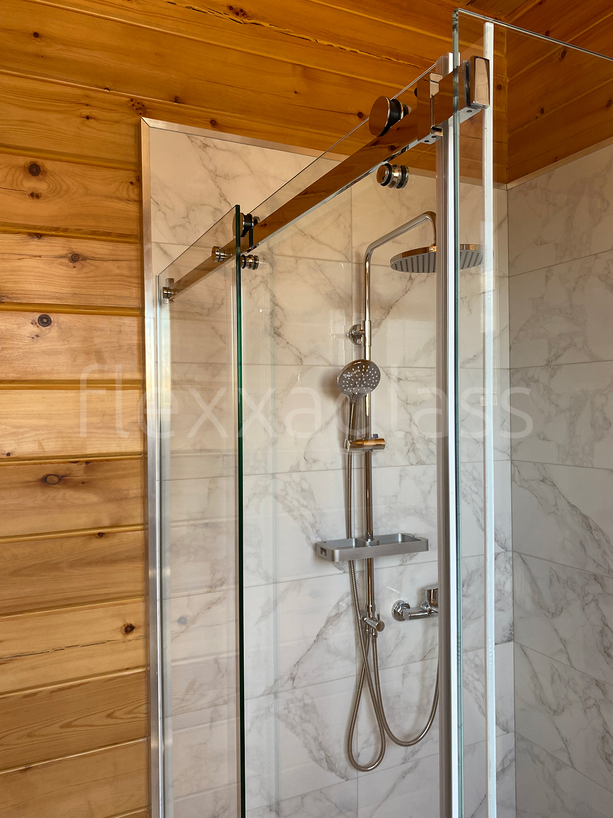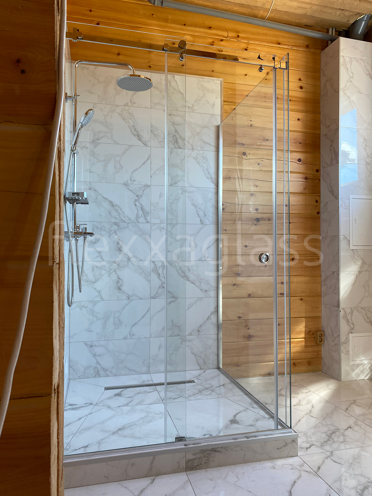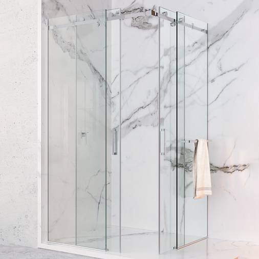 Угловая душевая с двумя раздвижными дверями