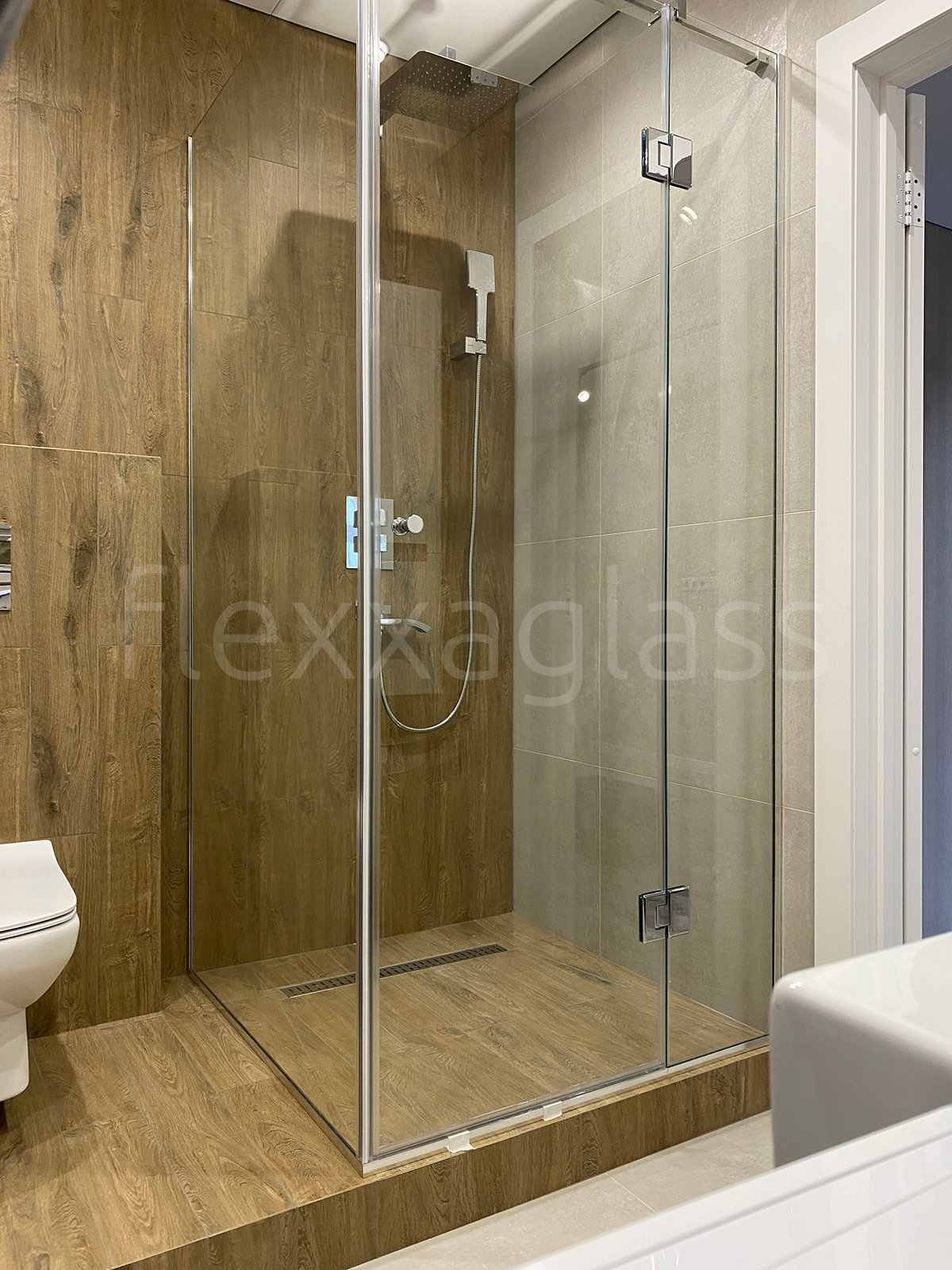 Трапециевидная душевая с распашной дверью